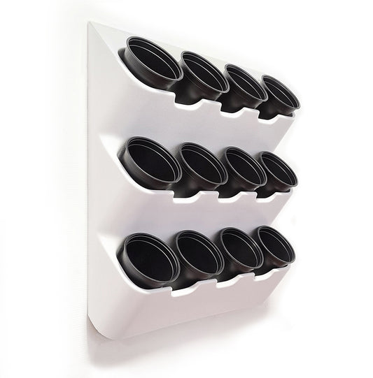 BOXSAND-12 (24"x26") Living Wall - Vertical Wall Planter, Vertical Garden for 12 Plants (White) + Square Black Pots