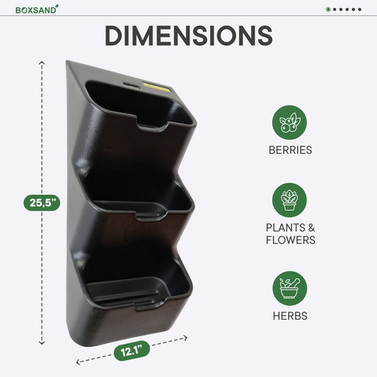 BOXSAND-6 Wall Planter, Living Wall (12"x26") - 6 Plants, Black Color