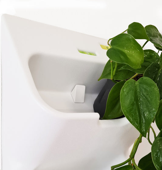 BOXSAND-6 Wall Planter, Living Wall (12"x26") - 6 Plants, White Color + Round Black Pots